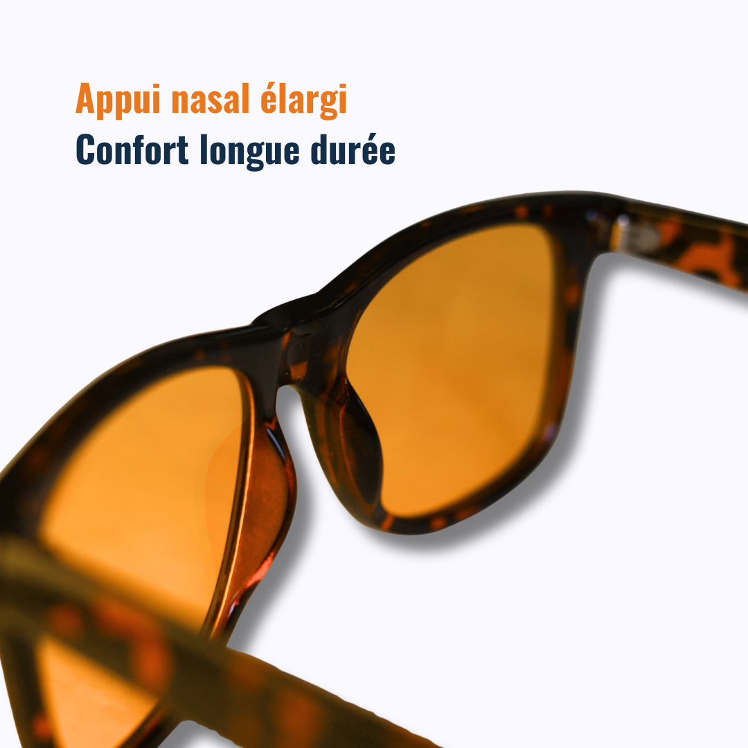 Cette lumière entrave la production naturelle de mélatonine, l'hormone du sommeil. Porter des verres ambrés en soirée trompe votre cerveau en lui signalant qu'il fait sombre, ce qui favorise le sommeil et améliore sa qualité.